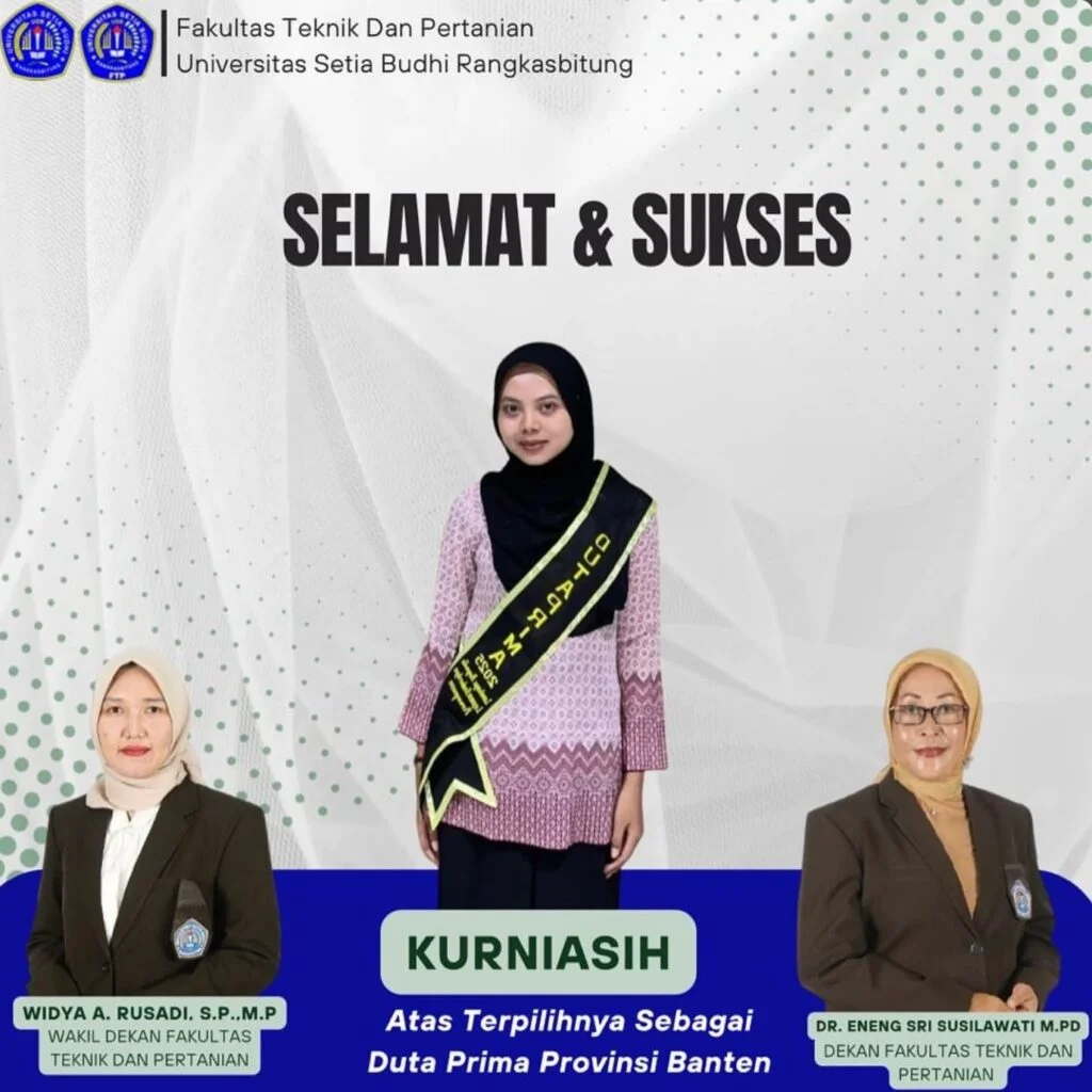 Selamat atas terpilihnya Duta Prima Provinsi Banten atas nama “Kurniasih” Mahasiswi Program studi Agribisnis angkatan 2025. Semoga bisa menjalankan tugas dengan baik.